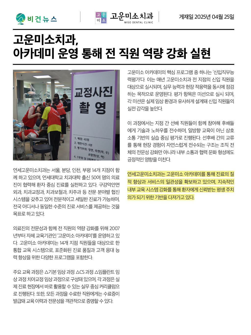 고운미소 소식 아카데미 운영 통해 전 직원 역량 강화 실현 작성자 고운미소 작성일 2025-05-28 11:40 조회 412 좋아요 0 싫어요 0 인쇄 « 치아미백, 왜 지금 더 필요할까요? 치아보험 서류 발급 안내 » 목록보기